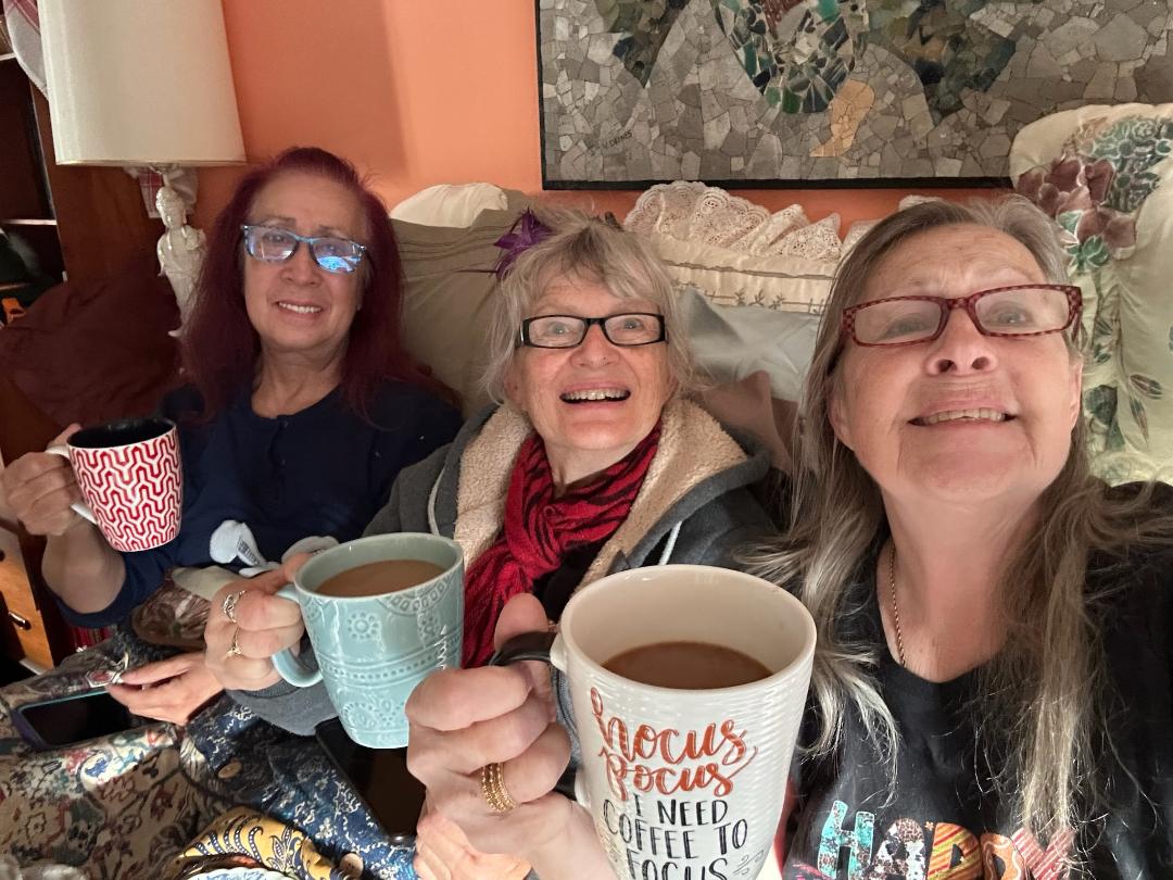 The "3 Peas in a Pod-Bed" with coffees in hand, getting ready to make our Facebook posts of last night's fun. See you next time!