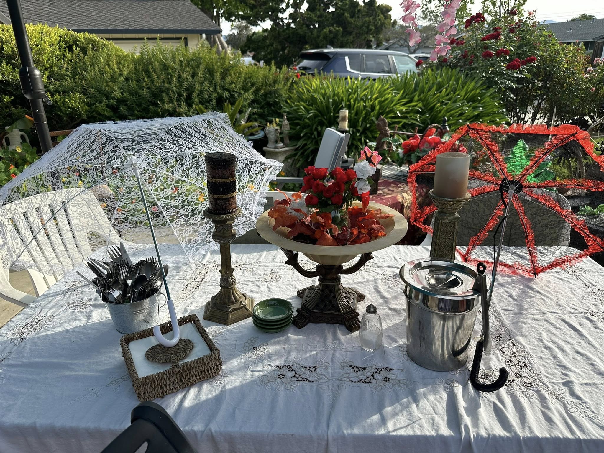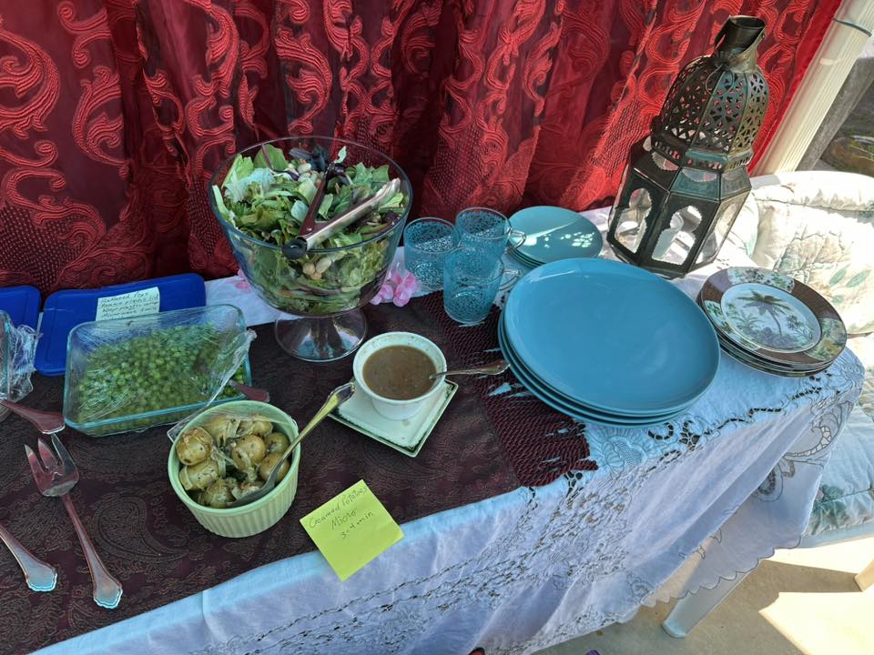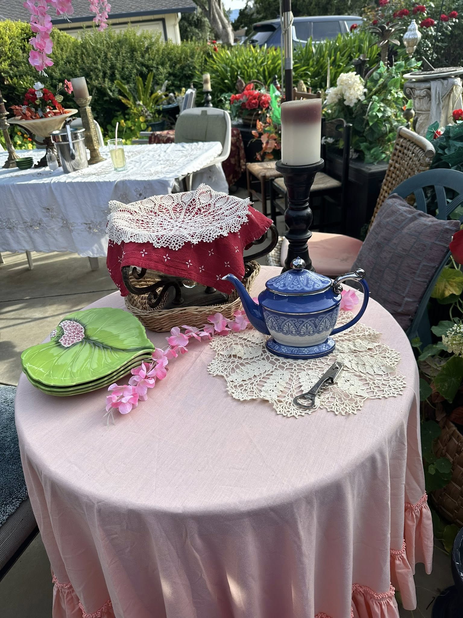 GNO April 18-19, 2026 “Went With The Breeze” Part 1. Our Southern Belle Themed party was set for Saturday April 18, but one of our Belles “Flora-Dora” got just plumb bumfuzzled and marked the wrong day on her little ol' social calendar! We had to start without her on Saturday but then stretched the fun gathering out to include her Sunday April 19 arrival. Here are some of the setting shots of The Veranda and our impromptu dining menu for the evening.