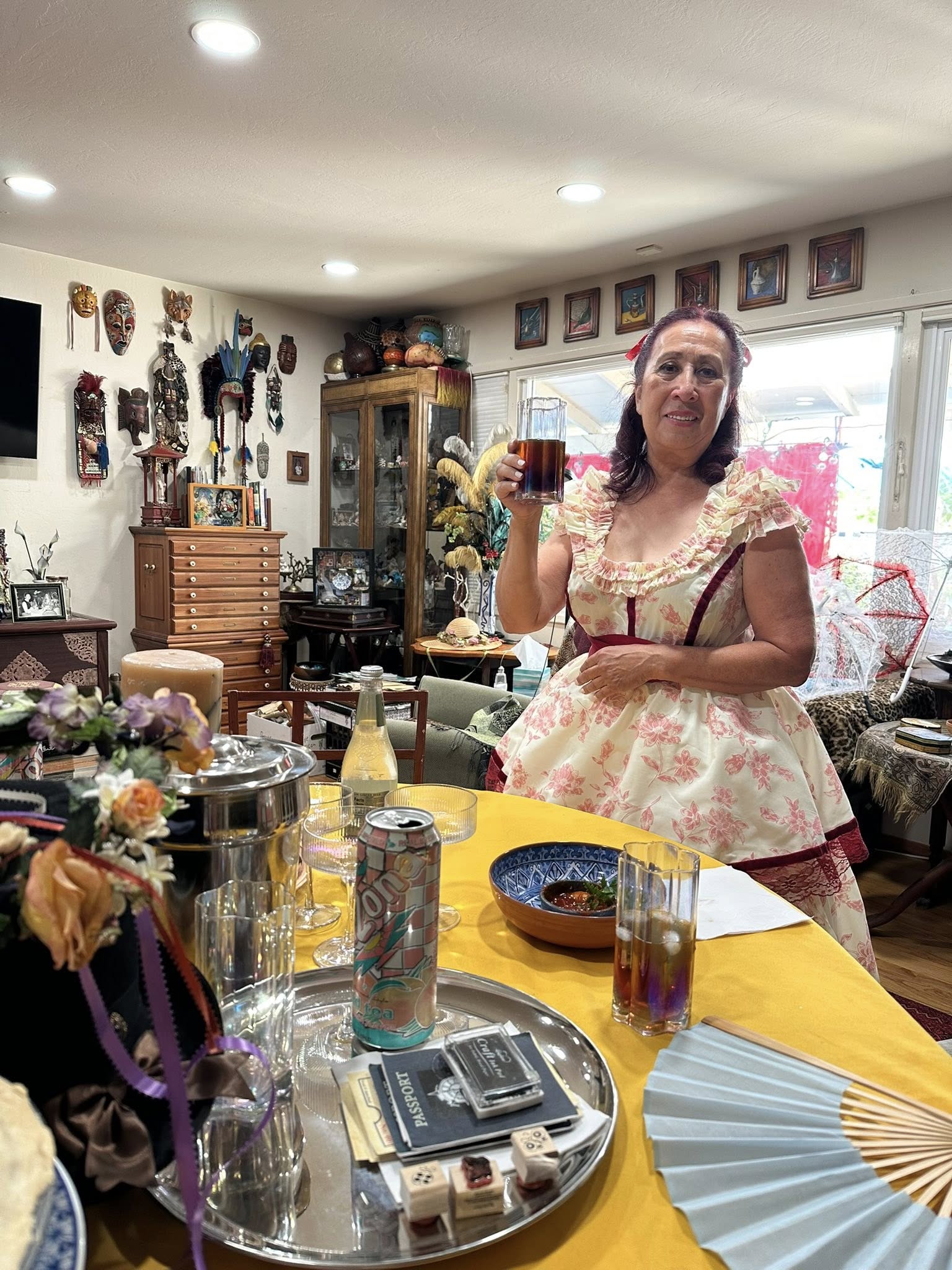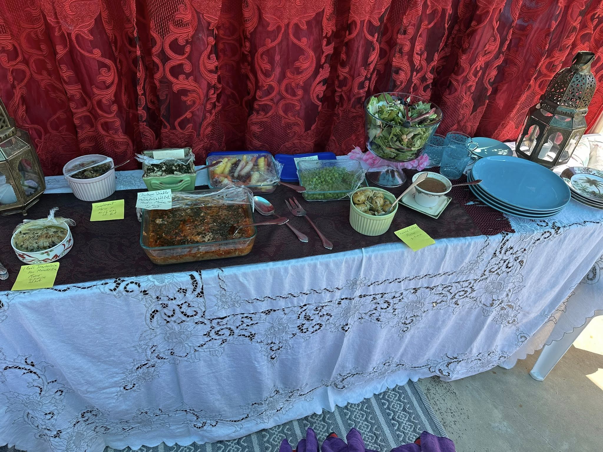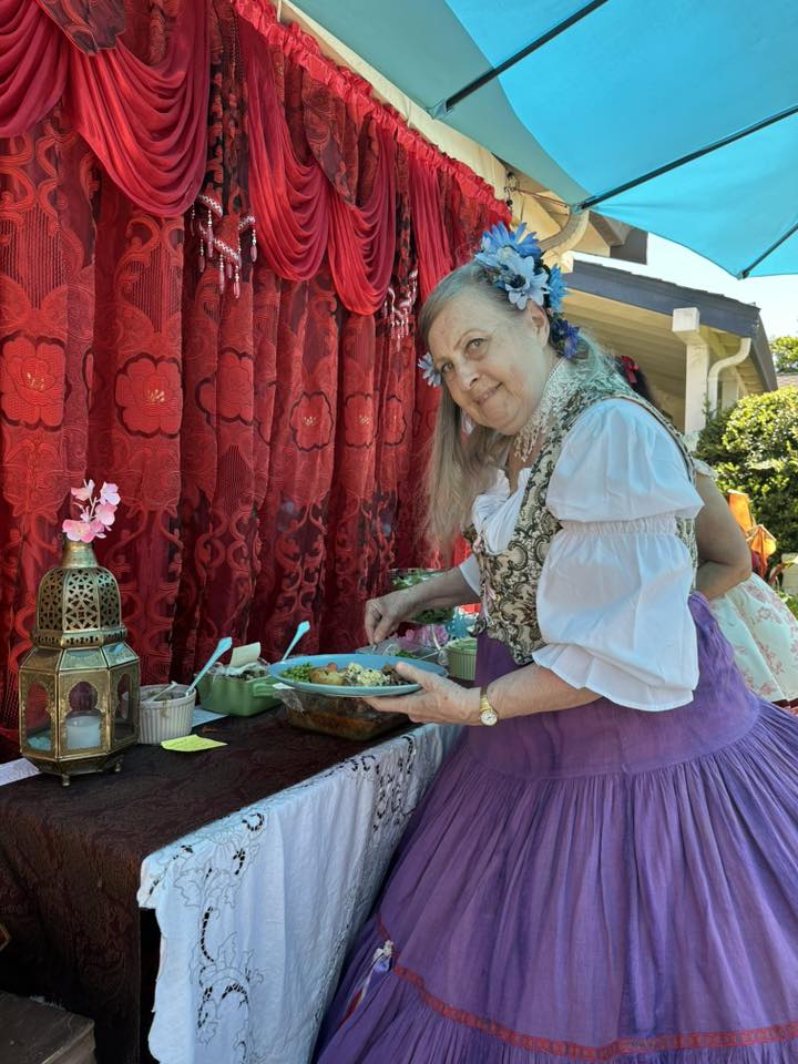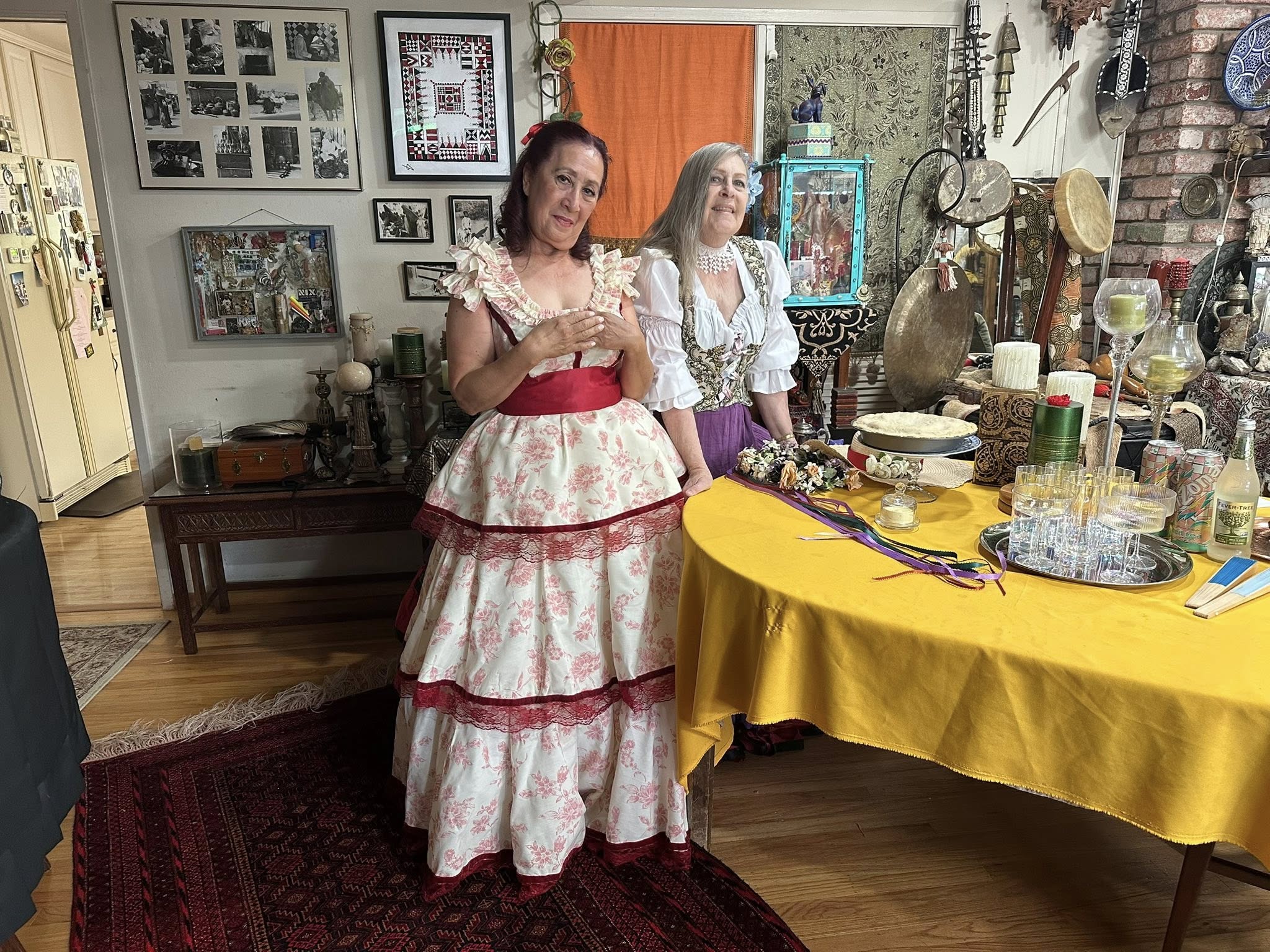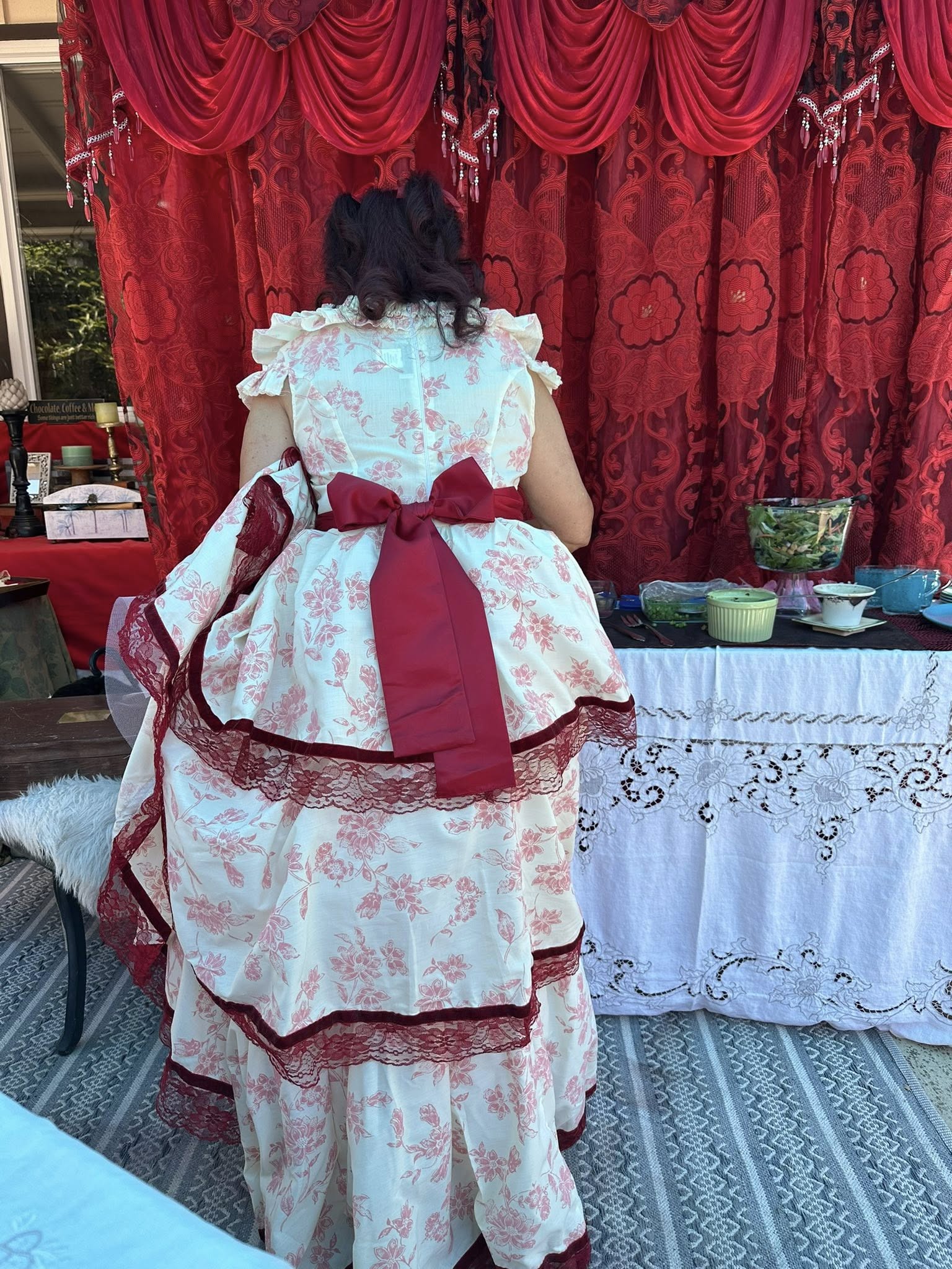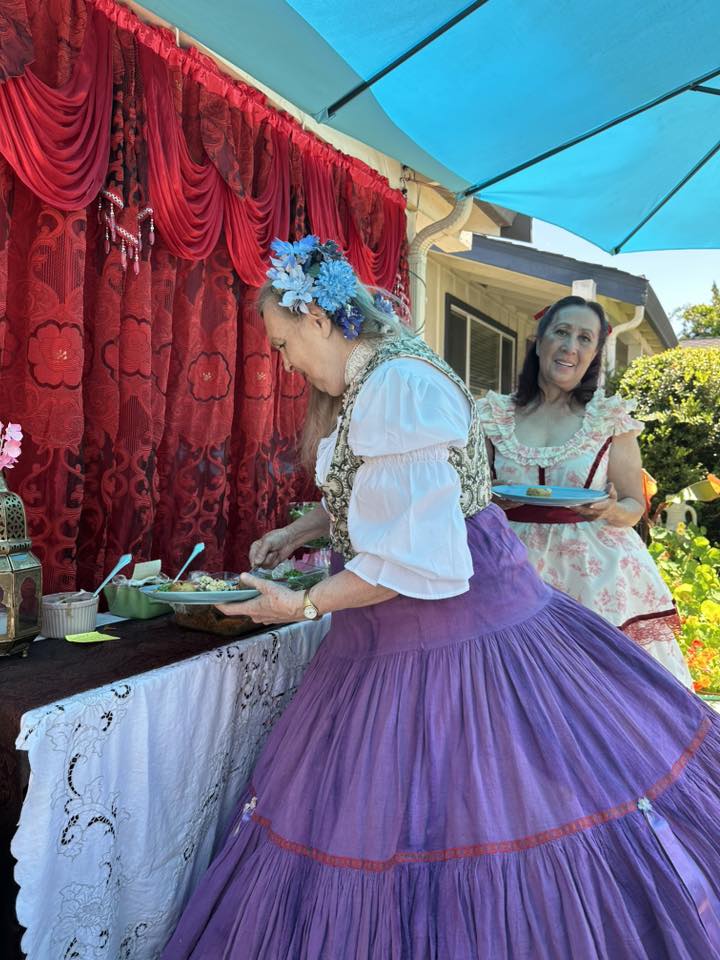 We conscripted Flora-Dora to set out the buffet. Serving in a hoop skirt is very challenging!!!