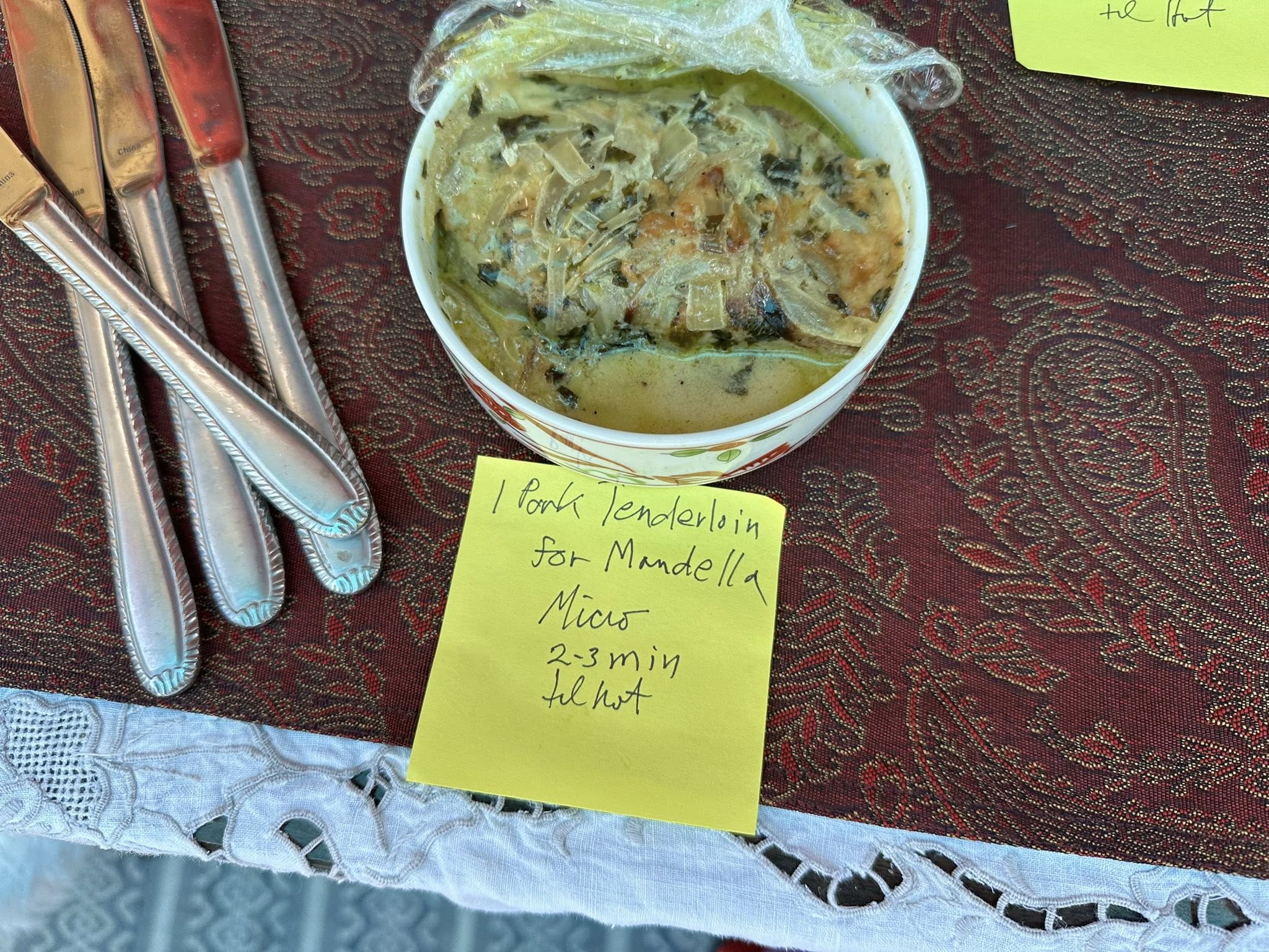 And Special Order for Mandella-Bella: one pork tenderloin- no chicken allowed!